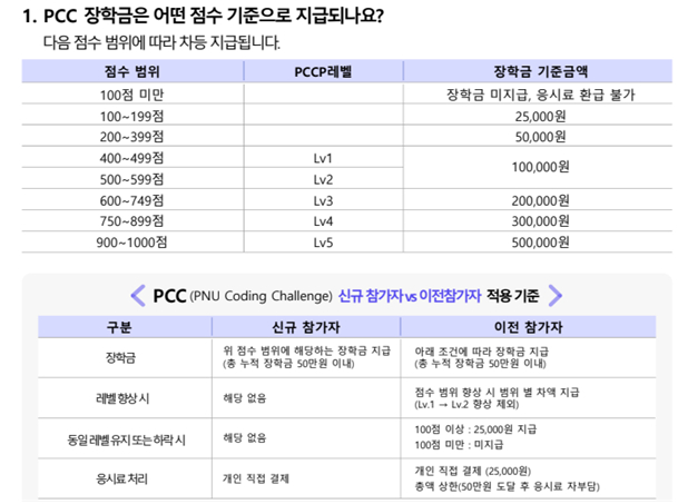 -시험 결과에 따라 차등 장학금 지급(신규 참가자 및 재참가자 기준 다름)
