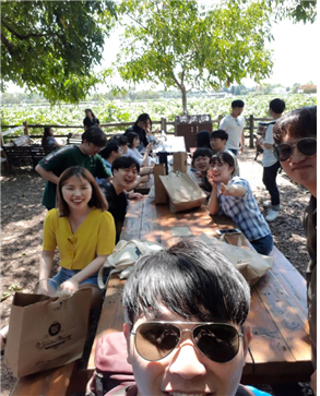 We all got together to talk about three weeks in San Jose drinking some wine. No one regrets coming to America and does not want to go back to Korea, especially because of the weather. The weather in San Jose has been perfect for the all three weeks.