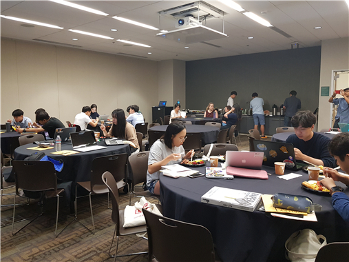 We had a final schedule today at San Jose State University. We were invited to the event and had farewell freakfast and final presentation. The breakfast SJSU prepared was really delicious. I always had just a sandwich or bread in the morning, so it was my first perfect breakfast in America. especially, bacon and potatoes tasted fantastic. We had a final check for the presentation while eating breakfast. The topic was to talk about the hackathon subject of each group. We prepared for hackathon for a long time, and marianne helped us prepare presentation in groups. So we can easily prepare the presentation. Also, they learned presentation skills from Marianne for three weeks, so they did not feel nervous about presenting in English. Besides Marianne, many school officials came and watched our presentation and asked questions. As I was asked various questions, I realized what else was needed, correct pronunciations and how made others understand. We will try to reinforce those things in the remaining time. After the presentation we all received certification for SJSU Summer program. Everyone was happy to be certified about class, but on the other hand, they were sad that they could no longer meet Marianne. For me, Marianne was a kind teacher who waited and helped me when spoken in English was difficult. We thanked and clapped our hands to Marianne and the teachers who helped us.