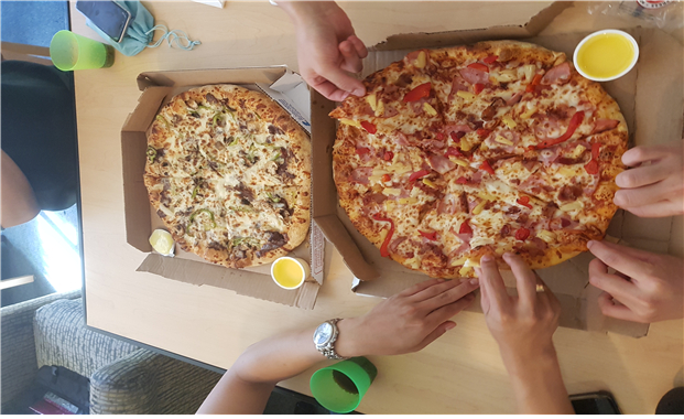 After finishing the hackathon in San Francisco, we returned to San Jose at 7 p.m to enjoy our last dinner. We had dinner at the nearest pizza restaurant in front of the SJSU with our senior Kang Chang-sung who works at Yahoo. We ordered a large pizza, but it produced twice the size of Korean large pizza. I missed Korean food so I put some pepper in the seafood pasta and it gave a flavor of Jjambbong.