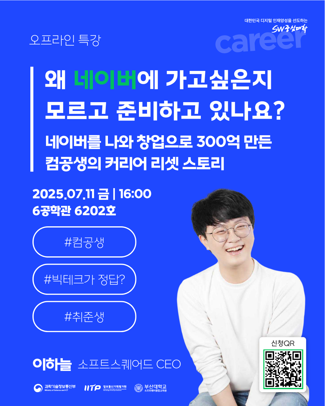 [모집] SW취업특강(네이버를 나와 창업으로 300억 만든 컴공생의 커리어 리셋 스토리) 참가자 모집